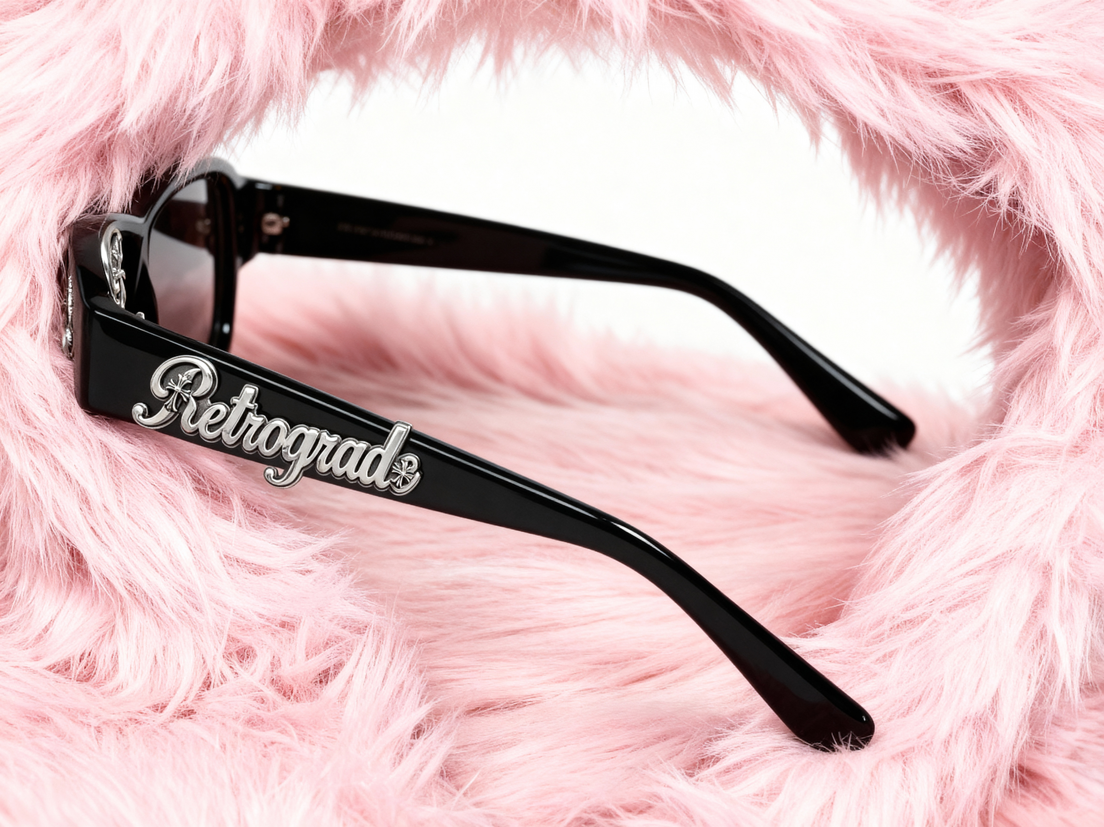 Styling: Curated the "Pink Fur" aesthetic to create a jarring, pop-color contrast against the severe black glasses, emphasizing the "Retrograde" energy.